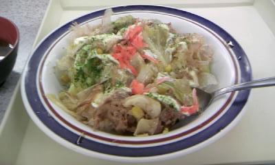 冷やご飯がお茶碗に3杯分残っているので今晩はご無沙汰だった炒飯にしましょうね。まず献立が決まりさえすればできたも同然。今日は楽勝だ~♪(それだけ毎日の献立決めには頭を悩ませます)ところが昼過ぎに家人よりメールが。『社食で【お好み風チャーハン】というのを食べました。二度目はないと思います。』滅多に付けない画像まで。(没メニューに限ってなぜ・・・)お好み風・・・う~ん? パッと見焼きそば風ですが。一体何がどういけなかったんだろ。それはともかく、月曜にカレーがかぶり、舌打ちしたばかりだというのに また・・・あまり食に関してうるさくない家人に「二度目はない」とまで言わせたそのお好み風チャーハンのせいで!くくく・・・。私が一言「夕飯はチャーハンだよ~ん」とメールしていれば、お互いこんな目には会わずに済んだことでしょう。しかし!まさか!社食に新メニューとしてこんなチャーハンが投入されるとは夢にも思わず・・・。数少ないこだわりどころである、昼食と同様のものは出さないポリシーを守るべく再び献立に頭を悩ますたんごでございます。 帰宅した家人にしつこく【お好み風チャーハン】の感想を求めたところ、創作多国籍料理の完全なる失敗作・・・と。とにかく食べていてこんなにテンションが下がる食事は久しぶりだったと。それ以上、多くを語ってはもらえませんでした・・・。 かえってどんな味だか気になるわ!・・・・・・・・・・・・・・・・・・・・・・・・・・・・・結局、夕食はオムライスにしました♪