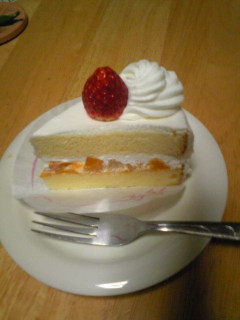 クリスマスにケーキを食べ損なったのでコージーコーナーのショートケーキ(SPじゃないほう)を。 スペシャルは、こう。少し大きくてクリームの分量が多くて間にもイチゴがはさまってて・・・・・・63円ほど高いです。(←だから?) それはともかく 336円のほうを美味しくいただきました。私は真ん中のピーチ、好きだなぁ~・・・負け惜しみでなく。 次にケーキをホールで買えるのはいつのことかしら。