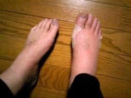 おう、なんということでしょう!休みに入った途端、家人が・・・家人の右足が・・・ こんなんなっちゃいました!(あり?写真だとわかりにくい・・・?赤くパンパンに腫れています) 「痛すぎて歩けん!!」と大騒ぎするので病院に連れて行ってあげました。足の裏のいぼに雑菌が入って膿が溜まっているとの診断。足の裏に麻酔して、切ってえぐって膿を出してもらう治療をしました。診察台の上でもやっぱり「イタイイタイ!!」と大騒ぎしてました・・・(苦笑) これは・・・アレかな。もしかして。12/12 の・・・・・・ふふふ・・・(Φ(Φ(ΦωΦ)Φ)Φ)・・・ふふふふふ・・・「たんごちゃんの痛いの」は二週間ちょっとで目的地に到達した模様(笑)