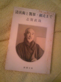 夕方になって家人から「用事が終わったからもう帰っちゃおうかな~」などとメールが入ったので「こっちは大丈夫だし、すご~く寒いから明日にしたら?」・・・と押しとどめて、ひとりぼっちのクリスマス・イブ♪を謳歌(?)ました。それで何してたかというと・・・【思いっきり半身浴】 (笑)だって普段はバタバタしていてなかなかゆっくりできないから・・・本腰いれて(←?)浸かるためのお供は志賀直哉の短編集。実家で廃棄処分寸前なのを持ってきたの。淡々と読めてちょうどいい。昔の文庫なので字がことさらに小さくて読みにくいのが難点ですが。(浴室、そんなに明るくないから余計に・・・)第一候補は高田好胤(昭和47年発行『情』)だったんですが、(字も少しは大きい)クリスマスイブに仏教系もなんだし、なんといっても浴室に持ち込む直前にサインがしてあるのを発見してしまったので・・・まほろばって・・・読めばわかるのかしらまあ、そんなこんなで足の皮がふやけるまで思う存分お風呂で過ごしました~。