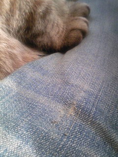 新しく買ったBFデニム(パンツ)は既にダメージ加工が施されているのでダメージ加工係の出番はありませぇ~ん。 ・・・って言ってるそばから そっちか!(こんなに必死な顔してたとは・・・) この時季よそいき以外(←死守!)、私の服はほとんどダメージ加工です。ええ、望むと望まざるとにかかわらず。ε-(;ーωーA
