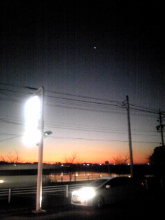 朝6:05出発 → 6:11 最寄のコンビニ駐車場にて明けの明星・・・家人の仕事場に到着後、折り返して 7:00ジャストにやっと朝が来た~! まぶしっ! 家人が忘年会で飲むので しかたなく送迎サービスです。よりにもよって、この冷え込みの厳しくなった日に。私は・・・夜のお迎えもあるので飲めません。つまらん・・・一人だけど、石油ファンヒーター点けてあったまってやるぅ~!せめてもの贅沢・・・(最低気温2℃でした。さすがに・・・)