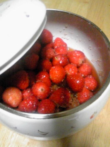 小粒の苺が安く手に入ったので 久しぶりに加工してみました。 半分はザラメでプレザーブに。火にかけている途中で保存用のビンが足りないことに気づきました(←遅い)が、処分するつもりで物置きに突っ込んでおいたのを再登場させて解決。 出来上がり。果実ごろごろプレザーブ と 半ごろしジャム 少しだけ詰め切れなかった分は牛乳と混ぜて凍らせてシャーベットにしました。 今、家中イチゴの香りでいっぱいで~す♪