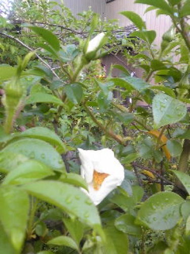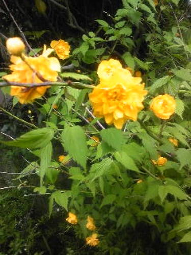 今日も雨降りですが、黄色い花を見ていると元気が出ます。(かと言って、濡れてまで見に行くこともなかったかもしれませんが) 山吹庭の片隅にポッと灯りが点ったようです。 カロライナジャスミン。いい香り。雨じゃなかったら、もっと香りが広がるのに。 でも明日雨が上がったら大洗濯が待ってます。物干し竿がとられているのはともかくとして、よ。晴れたら蜜を狙ってハチがたくさん来るね、これは。ブ~ンブンブンブ~ンブンブン・・・。(実際、ハチのみならず 黄砂も飛んでくるのだった・・・黄色絡み・・・)