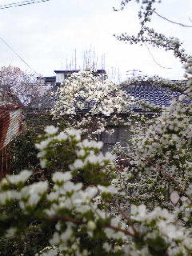 主なしとて春な忘れそ 我が家の裏庭から小道一本はさんで老夫婦が住んでいたお宅があります。雪柳越しに満開の白木蓮。冬の間におじいちゃんとおばあちゃんはよそに移られて今は空き家の庭に今年も咲いています。