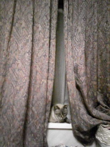 カーテンを開ければ 「・・・ニャニ!?ε=(=`・´=)」・・・奴(太猫)が居る。 冬はここ(出窓)でくつろぐなんて、まずない。冷える場所だから。あったかくなったんだなぁ~。(というか、もう半袖の季節だ) 今日から 5月。