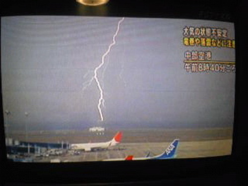 朝からジャンジャンバリバリゴロゴロぐわらぐわらと・・・すごい雷鳴。それも長時間、頭の上で。危険すぎて表にも出られません。(で、ゴミ出しさぼった) 昼のニュースで知ったのですが中部国際空港沖で竜巻がいくつか観測されていたそうです。朝8時40分頃の空港。空が広いからまるで稲妻ショーのようだ。 この赤いところ、多分この後我が家の上空を通ってる(はず)。 ひぃぃ~クワバラクワバラ・・・海上だったので被害は報告されていませんが・・・先日関東地方で起こった竜巻の被害を目の当たりにしたばかり。床下収納を片付けて もぐる訓練とかしといたほうがいいかも。(でも床下って、なんかコワイ。いろんな意味で。ちょっと度胸がいります) とにかく今日は一日雨戸締め切りで過ごしました。