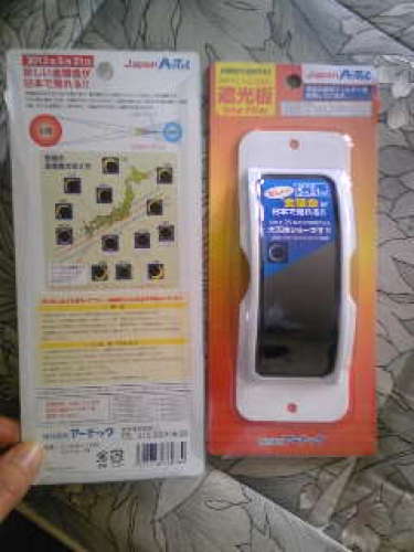 まだまだ先のことと思っていたらあっという間に五月に入り、世間も騒がしくなってまいりました。21日朝の金環日食に備えて、我が家も・・・準備万端(昨日到着) 視感透過率:0.000005%紫外線透過率:0.000003~0.000012%赤外線透過率:0.014083%これを装着すると、太陽以外何も見えなくなります。 で、どう見えるか予行演習・・・ この太陽が(目はそらして当てずっぽうで撮影) このようにちっちゃ!(笑)(実際の見た目はもう少し大きくハッキリしています)太陽って輝いてるから大きい印象だけど、遠いんだなぁ・・・とあらためて感じ入った次第でございます。 日時確認ヨシ!方角確認ヨシ!角度確認ヨシ! 観察方法ヨシ!あとは当日のお天気次第ですね。今のところ、ちょっと微妙かな・・・薄曇りくらいならかえって好都合というものだけど。 タイムセールで安かった(¥180)ので家人の分も買ってあげました。 商品自体は値下がりしているけど、メール便が使えなくなっていますね。21日に間に合わなかったら意味ないもんね。