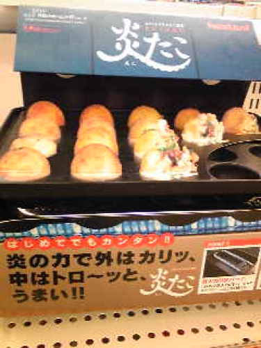 たこ焼き、焼けてます。 こんな感じで。これ、欲しいかも。(たこ焼き器でなく、ディスプレイのほう)