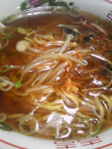このラーメン、お店の開店以来注文するのは二回目ですが・・・知らずに出されたら「だから何?」という代物です。そこそこおいしいのは間違いないのですが。 スープを残すと多少損です。ここまで食べ進んでようやく認識できた 「フカヒレ」らしきひと筋。春雨とモヤシに翻弄されつつ一喜一憂「ふかひれラーメン」(メニュー名) ま、440円(本日半額)で姿煮がのってるとは思いませんけど。