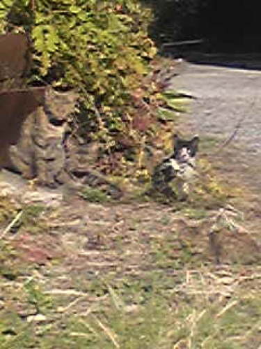 ファミリーかな? ぼけぼけで判別しにくいけど、4匹います。 撮り直し・・・と、思ったら手前にいたコがフレームアウト。残念。カメラ目線もバッチリくれてるんだけど・・・(カメラと技術が・・・くくく・・・それが一番残念)