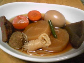 昨晩はなんだか寒くてなかなか寝付かれなかったわ~で、今晩は湯たんぽ出動と相成りました。(お湯が沸く間にこれ書いてます) 11月になりました。 夕食は二日目の おでん です。(カレ-ボウル、ただ今おでん皿として活躍中) 実家では 関東煮 と呼んでいるタイプです。私(実家)の中のおでんは、昆布だしで煮た具に甘味噌(八丁味噌)とろり~♪東京生まれの家人に言わせると、これは「田楽だ」と。なるほど。(言われてみれば) それはともかく今回は相当つゆだく(出汁2リットル)、それもかなり美味しくできたので変化なしの具材追加だけであと数日、なんとか・・・もたせたいな~。 (しかしながら明後日あたりに肉じゃが、その後は豚汁かカレーに変化の予感)