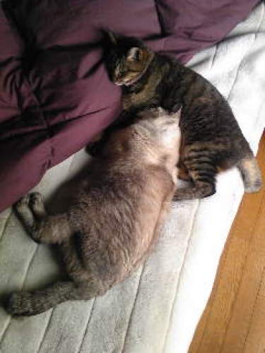 乗られ・・・ 挟まれ・・・ いつもたいへんね、細猫ちゃん♪ 「いいから早く台所とお風呂、片付ければ?」はい・・・。 実家のほうがひと段落ついたので、今度(7日)は自宅のガス機器の工事です。延々続くよ、片付けは・・・しかし二ヶ所同時はキッツイわ~(なにしろ、あふれるモノたちの行き場がなくて) それでなくても自宅での作業ってちっともはかどらないというのに。(つい、猫に逃避する悪いくせ・・・)
