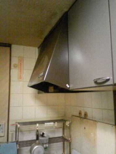 レンジフードと お風呂の湯沸かし器&換気扇 今日の今日まで二十年間、ごくろうさまでした!個人的には18年お世話になりました。(私より古株) 明日は朝8時から工事です。(早い・・・)