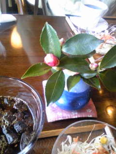久しぶりに蔵の喫茶店でモーニング。店の中庭のものと思しき山茶花が一輪挿しに。あぁなごむ。
