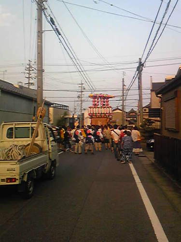 夕方、やけに陽気なお囃子につられて外に出てみたら通りの向こうのほうがなにやら賑やかそうか、今日は近所の津島神社のお祭りでした。 早足で追いついてみる。山車、というか屋台の前部におそろいの着物姿の少女数人、後部には三味線・太鼓が乗っており笛吹きの若衆は後ろから歩いてついてきます。夏のお祭りらしく、彩り鮮やかだ♪少女たちは舞い手さんでした。 あずきバーが振舞われました。わ~い♪ちょうどいい夕涼みです。 ちょっと先回りして神社に行ってみたけど露店が一軒も出ていなかったのでお参りだけして帰ってきました。 え~と、なにか・・・あっ晩ごはんの仕度・・・忘れてた~。
