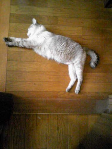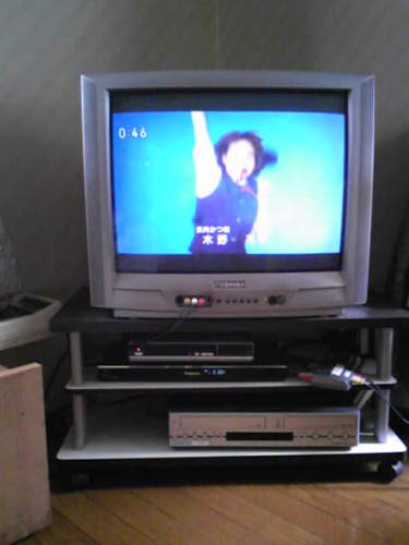 実は昨日、満を持して新しいテレビジョンを購入してました。(なのでこれは昨日のお話です) チラシ掲載の39型フルハイビジョン狙いで家電量販店に行き買ってきたのは32型(なんでやねん)32型の配送と設置は料金がかかるというのでそこは迷わずお持ち帰りで ただいま家人が設置準備中・・・太猫は空いたTV台の上でくつろぎ中・・・ 君は13年間、よくがんばりました。ありがとう。さらばブラウン管