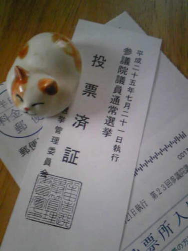 朝のうちに済ませてきました。有権者となり久しいですが初めて出口調査というものをうけました。NHKとCBC。当たり年か(笑)。 実家の父が車椅子で投票に行くのに不便だろうと先に投票所の様子を確認して車で迎えに行ったのに「行かない」って一蹴されました。んもう~娘の心父知らず。