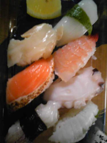 塩&レモンで食べる海鮮鮨夏向きでサッパリおいしい。酢飯は甘めでバランスをとっています。7貫298円、なおよろし。