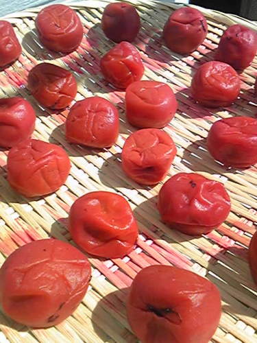今日は・・・晴れ?降らずとも雲多目の日々だったので予定より日数がかかりましたが・・・ 本日をもって 梅干し完成といたしましょうあああ おいしそう・・・(タラ・・・・)これでしばらく保存容器で寝かせるのですが今、まさに味見(つまみ食い)がしたい真っ最中。でも数が少ないからな~ここはガマンガマン。