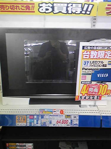 先週土曜日(旅行中)の新聞の折込チラシを全く見ないまま放置してあったのに気づきもう四日も過ぎているし たいした期待もなかったけれど 片付け仕事のようにチェックしていたら・・・な、なんと今や希少なPナソニックのテレビの出物が!それも「これが安くなっていたら即購入する」つもりだった機種。しかし先着三台限りか・・・もう完全に遅いわね・・・(相当がっかり)いや万が一ってこともあるからね、一応・・・ 見に行ってみた。・・・やっぱりね。(完売)ちなみに展示してあるふうに見えるのは、現品じゃなくてボール紙製のダミーです(笑)。 これまで、週末に何件も入る家電量販店のチラシを全部欠かさずチェックしていたワタクシですのに。間が悪い、とはこのことだなぁ~。