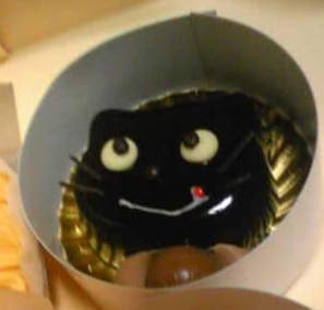 我が家の記念日御用達のケーキ屋さんがこの週末に数日遅れの周年祭だったので家人と二つずつ好きなのを選んで買ってきました。家人のチョイス:左の2個(オレンジ・イモンブラン、KAKI)私のチョイス:右の2個(JIJI、COMOMO)素材デザインとも、10月らしさ満載です。(うち3つは新作) 私はまず、JIJIをいただきますよあぁ・・・中を撮ろうと思ったら食べれば食べるほど猟奇的に・・・ 食べ始める前は、愛嬌たっぷりのチョコ三昧・黒猫JIJIちゃんでした。