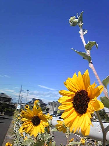 あれ、今、夏だった? ・・・と、一瞬 思い違いしてしまいそうな陽気です。 ひまわりも全開バリバリ、いぇーい!10月だけど、夏日の記録更新中。