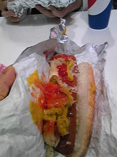 昨日、コストコが7:45にアーリーオープンしたとの情報を得て、8時頃到着しましたが・・・もう駐車場いっぱい!なんと本日は7時過ぎに開店したそうです。 フードコート狙いでしたが、こちらも既に大賑わい。初ホットドッグを画像に収めんとてフリーのトッピングを全種類ニュニュニュ~っとのっけて「すごくおいしそうにできた♪」家人が取ってくれた席にそ~っと置いてドリンクを取りにいって戻ったら・・・ なな、ナンデスカ、コレは!?どーしたことだ?家人が自分の分と並べて写真を撮ろうと移動させたら中身がコケて、こうなった・・・とな。んも~なにしてくれてんの・・・ ごらんのとおり、画像も台無しだけどたっぷりトッピングがパンから思いっきりはみだして、食べにくいよう・・・プリプリ!(でもおいしかった)