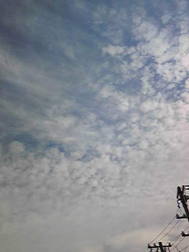 寒気を伴う筋状の雲、秋のうろこ雲(もしくは羊雲)寒い寒い。この秋一番の寒さがやってきました。 今宵は十三夜だそうです。栗名月。(風で飛ばされたのか、通りの真ん中にコロンと栗のイガがひとつ) 遠い、にじんだ月の夜です。栗蒸し羊羹、栗金糖・・・買っておくんだった・・・
