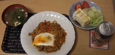 残ってますからね、2日分別に冷凍してるんで急いで食べることもないんですけど仕事帰りだと買い物に行くのが面倒なんでとりあえずあるものを消費していこうかと昨日は職場の激励会で晩御飯はブッフェで色々食べましたしお酒も飲みましただから今日は残り物でも我慢しときますフライパンを使うのが面倒だったので目玉焼きはレンジで作りました知ってました目玉焼きは生卵をレンジで1、2分くらいチンするとできるんですよこのときのポイントは黄身に2,3箇所箸で穴を開けておくと爆発しにくくなりますあとは様子を見て半熟くらいで止めて数秒置いておくとうまくいくんで試してみてくださいただし、爆発してもボクは責任を取れないんで自己責任でお試しくださいお味噌汁はレトルトで鍋で残った豆腐をサラダに加えましたお味噌汁は作るよりレトルトの方が一人暮らしにはイイという母のアドバイスにしたがっております今日は野菜がなかったんでしょうがないですけどせめてもう少し野菜を足したお味噌汁が飲みたいですビールは激励会で残ったのをいただいてきました明日は残ってる豆腐でハンバーグでも作ろうかな