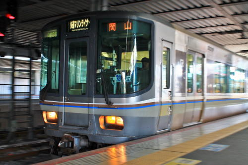 続きですよ。これから乗るのはマリンライナー!乗れる機会があったら乗りたいと思っていただけに、今回は貴重な機会でした。反対側の車両は2階建て。5000系というこの1両だけ編成の中で2階建てになっていて、指定席という有料の席を持っています。上がグリーン車、下が普通車の指定席です。何だか215系を思い出させますねぇ。横っちょのラインが東日本の車両なんかとは全く違いますね!イヤイヤ、215系やE231系ももちろん好きですよ(E217系の現在の色は未だに好きになれないが)。普通に2階乗ってもいいんですが、それではチト面白みに欠けるよねー。てことで、今回は1階でも2階でもない席を指定しました。まぁ1階は普通席なので元から候補に入っちゃいませんが(笑)先頭にある席は、パノラマシート!先端に4席あるグリーン車です。こんな感じで運転席の背後に座って、瀬戸大橋線を満喫中~♪気が付いたら瀬戸大橋を渡り始めていました。うを~こんなに長い橋なんて素晴らしい!綺麗な海なのに柱ずくめで景色を撮れない海です…(笑)景色を楽しめるグリーン車はイイネ!自由席ではもったいないですよ!座席の裏側にブランケットが入っているので、寒い時期にも足元は温かいです♪さっきまであの橋を渡ってきたんですね~。エメラルドグリーンの海とても綺麗でした。いつかは船から眺めてみたいなぁ。終点の高松に到着です。まぁ、フツーの列車。首都圏の普通列車グリーンより少しいいかなって程度。でも四国上陸には欠かせない列車だよねー!↓ちなみに1階の指定席の様子↓普通列車グリーンはコチラに当てはまりますね。リクライニングするっていうくらいの薄っぺらな座席ね(笑)あまり実感はわかないが、高松…つまり、四国初上陸。岡山へ行くなら、四国にも初上陸できんじゃん!と気付いたのは出発のほんの数日前…(笑)だからほとんど事前調べはしていない状態で決めました。ぶっちゃけマリンライナー自体も、パノラマ席が埋まってたので予定より1本遅らせたし。あまり街の中心部って感じがしませんでしたが、歩いてないからかな?駅前にはシンボルタワーがそびえ立っていました。うわー最上階の30階は無料の展望台なのかーーーーー!!!!無料とか、ぜひのぼりたかったぞーーーーーー!!!!!皆さんは、こうならないようにリサーチをちゃんとされることをおすすめいたします。後になって悔やむというのが怖いんだからぁ(笑)今回の高松への寄り道は、あくまで「四国初上陸」をしたかっただけにすぎないので、滞在30分程度で出ます。右側の普通列車に乗ります。車内はこんな感じでした。ドア上にLED掲示板があるのが面白いですね。ボックスシートに座り、ちょっと眠たくなる時間……。宇多津で途中下車しました。ここから岡山までは、特急を使いたいと思います。そう、これがメインです!(←あれ?)