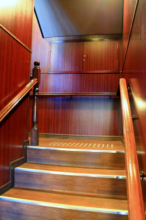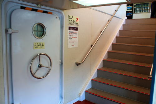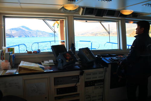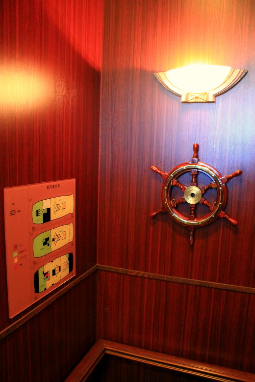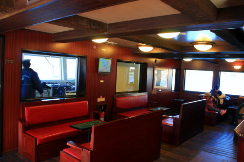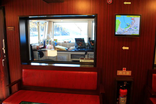 1階席からは操舵室が見えます。レーダー探知機?も置いてあり、見ごたえがあります。