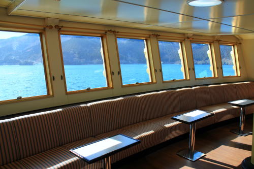 芦ノ湖で運航される観光船は、登山鉄道やバス、ロープウェイなどと同じ小田急箱根ホールディングスのグループ会社に運営されています。3つの船舶が在籍しており、いずれも追加料金の必要な特別船室が設置されています。