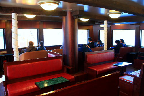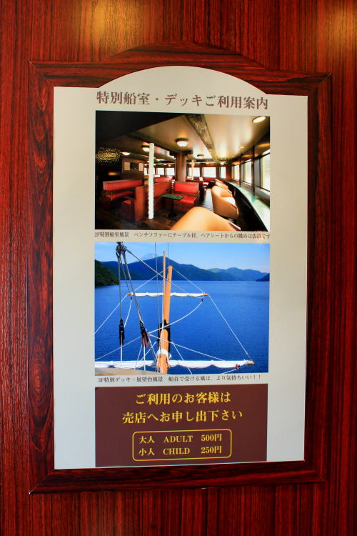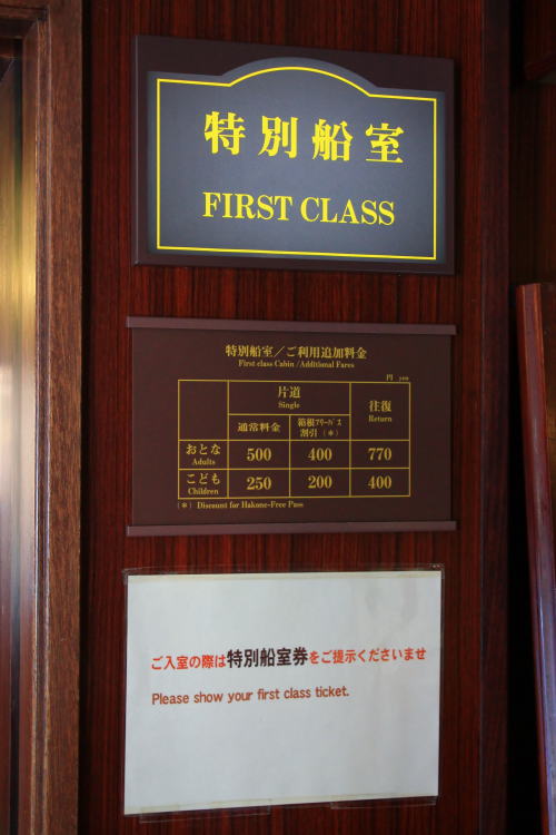 箱根の乗り物が乗り放題の箱根フリーパスでこちらも乗り放題です。箱根にいらしたらぜひ乗ってみてください。2階建てで、特別船室も1階と2階で分かれています(写真は両方のフロアをごちゃ混ぜにして配置しています。面倒くさいので)。