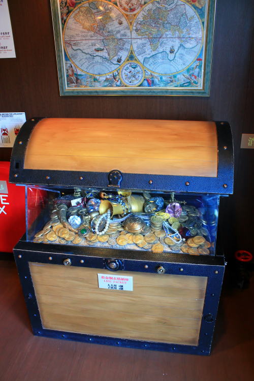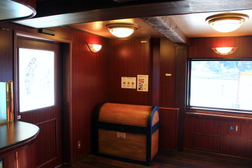 救命胴衣は宝箱の中に入っています。海賊船ならでは!