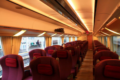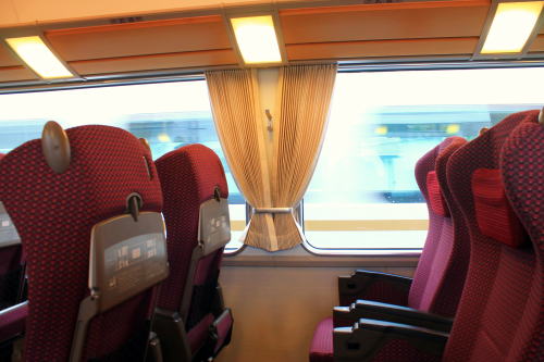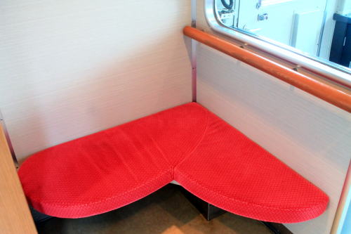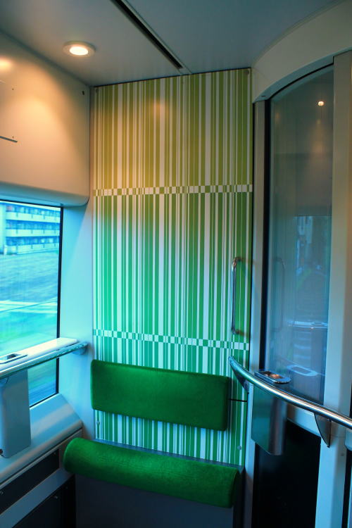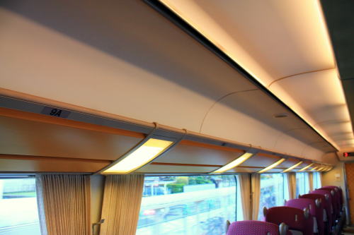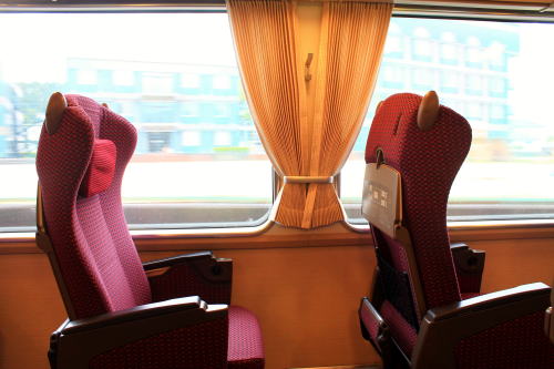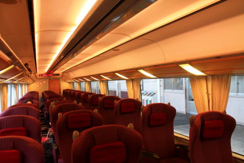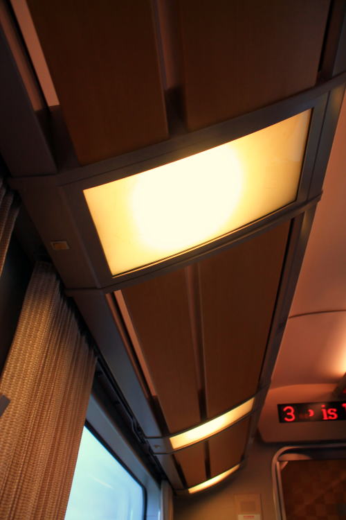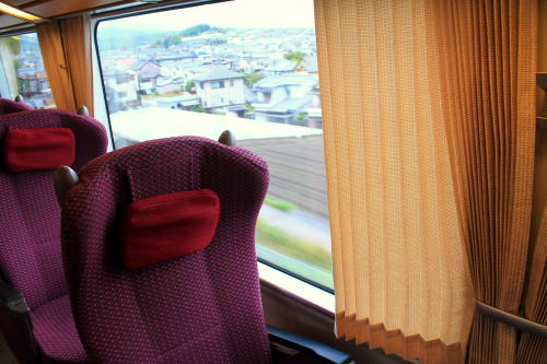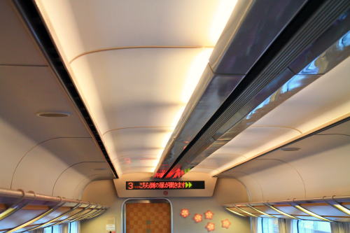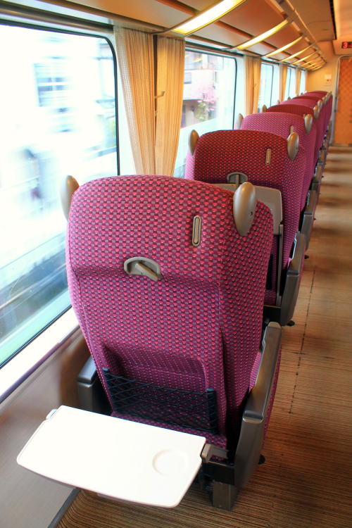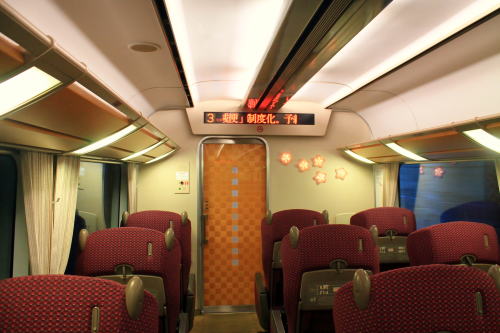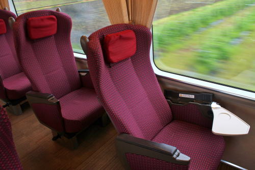 2011年のリニューアル後から、DXシートが新設されました。客室内の荷物棚や仕切扉には吉野の木材や和紙が、腰かけには草木染めをイメージした布が使用されています。座席はゆりかご式です。これはレギュラーシートでも同じなのですが、座席下の空間が広くなり、快適になります。