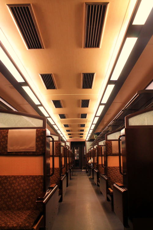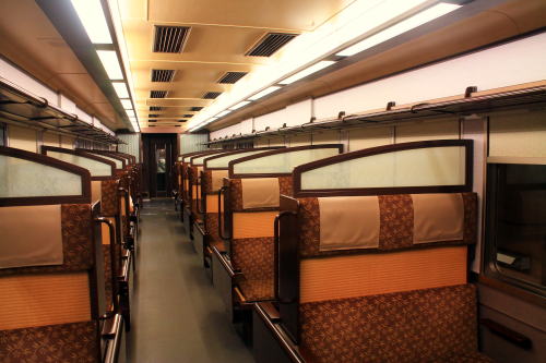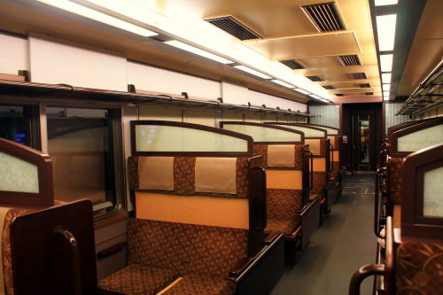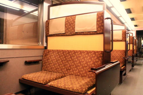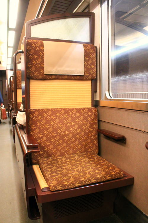 3・4号車は2人席・4人席のボックスシートになっています。座席自体の背が高く、座席上のパーテーションで半個室感を演出。グループでの乗車が多く見られました。