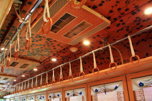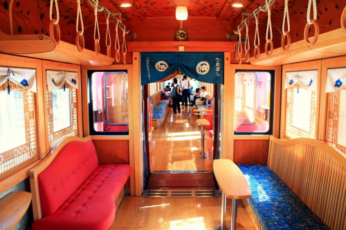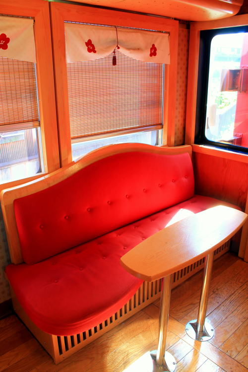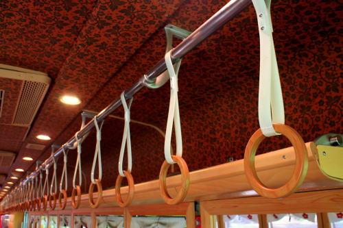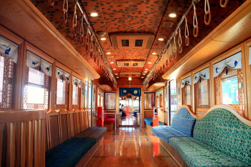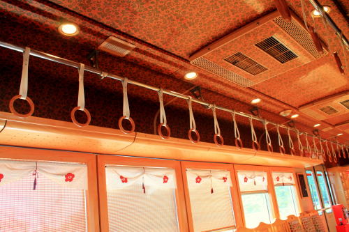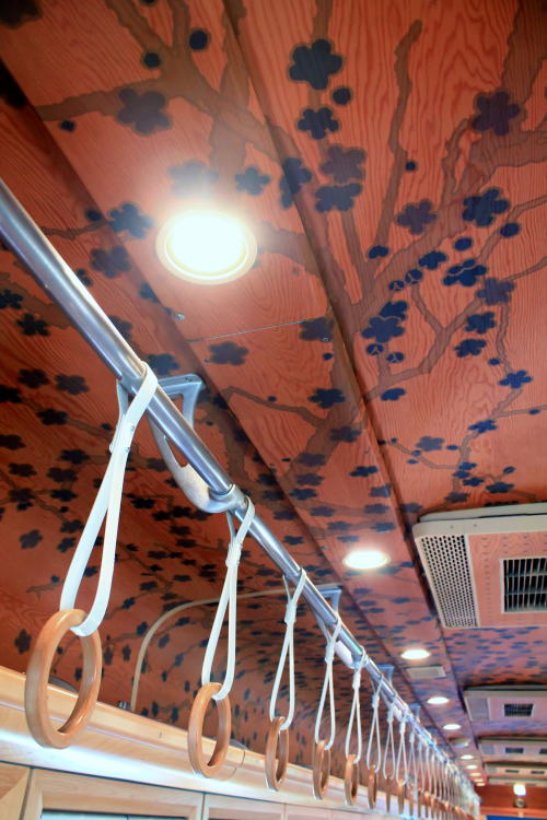 普通列車でこれは豪華な雰囲気ですよ。いちご電車やたま電車などとは違い、こちらは2016年の登場だけあって「最近の水戸岡デザイン電車」の流れですね。