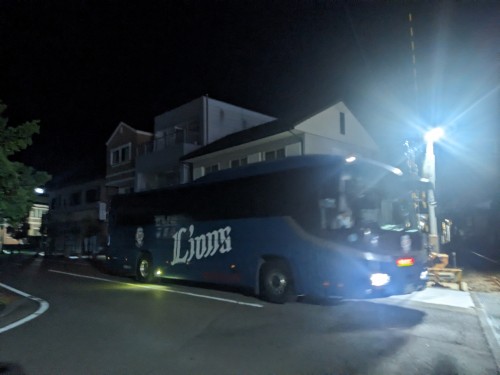 ホテルに戻ろうとすると、西武ライオンズカラーのバスが出現!