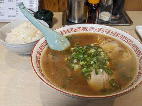 速水さんでラーメンとライス、餃子のセットでスタミナを回復っす。目の前のキッチンでは郊外あるあるのご近所話。地方に来たなぁという感覚はいけませんでしょうか?(笑)