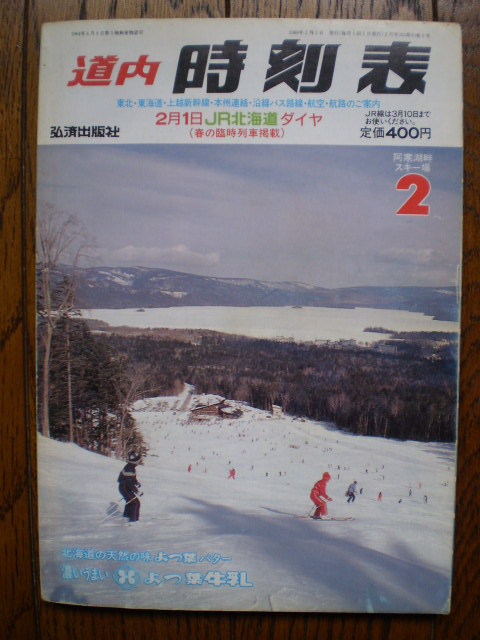 1989年(平成1年)2月の道内時刻表です。表紙は阿寒湖畔スキー場。市町村合併で現在は釧路市内になってしまいました。阿寒湖なのに釧路市、ちょっと違和感ですね。この年の2月23日~27日、大喪の礼と土日、休暇を1日使って流氷の旅を・・・続きは私のもう1つのBlogへ。