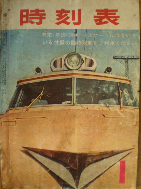 1964年(昭和39年)1月の業務用時刻表です。一部の広告ページが削除されていたり、「よい営業マンとなるために」というページがあったりと、市販のものと違うある意味レアものかもしれません。(笑)表紙は、当時のビジネス特急こだまに使用されていた151系電車。しかし、この年の秋には新幹線が開業し活躍の場を奪われてしまいます。この当時は、名古屋発名古屋行き(岐阜・高山・富山・敦賀・米原経由)、札幌発札幌行き(倶知安・胆振線・伊達紋別経由)などユニークな・・・続きは私のもう1つのBlogへ。