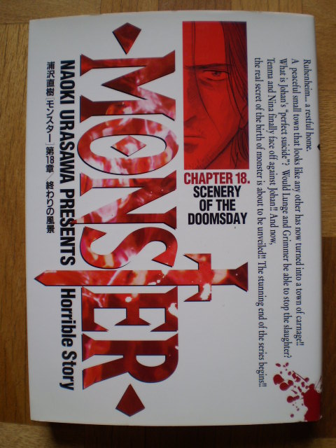 浦沢直樹著・MONSTERです。主人公の外科医・テンマは瀕死の重傷の少年を手術し、命を救います。しかし、その少年は並外れた頭脳を持つ冷酷無比な殺人鬼だったのです。無類の殺人鬼(MONSTER)を蘇らせてしまったことに自責の念を感じたテンマは、殺人事件の容疑者の濡れ衣を着せられたまま、MONSTER抹殺の旅に出ますが・・・。東西冷戦構造、ベルリンの壁崩壊の以前以後のドイツなどの社会情勢も随所に織り込みながらのミステリー作品となっています。『新のぞき屋』全11巻、山本英夫・・・続きは私のもう1つのBlogへ。