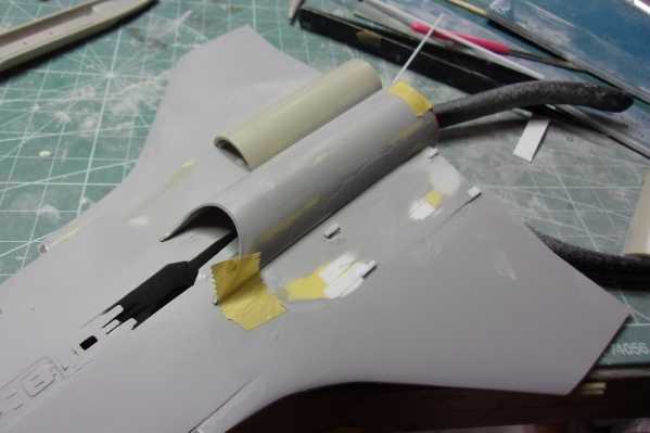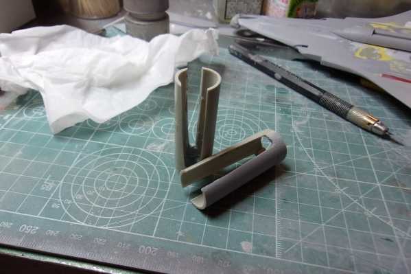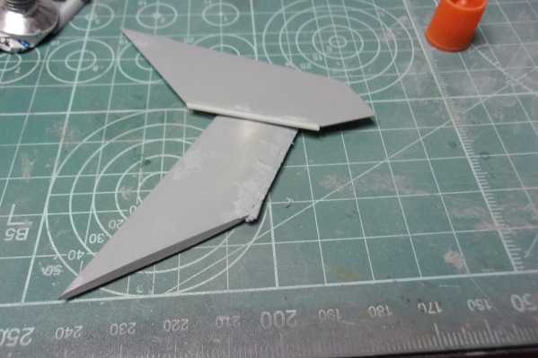 今日は土曜日!いつもより早起きしてマッハで仕事を片付けてから模型作り開始です。先週に続いて反対側のエンジンの加工です。何度も何度も擦り合わせてパーツ間の隙間を減らしていきます。更にプラ棒で固定位置を決めます。どんなに正確に作ったつもりでも必ず左右で誤差が生じるので、その都度水研ぎして調節します。先週作った中央のカバーですが、一週間経って見てみるとかなり歪んでいたことが判明。基準となるパーツなのでペーパーで再度磨き直しました。裏側は完成後ほとんど見えなくなりますが形だけはしっかり整える必要があります。今回脚部は付きません。だからと言って飛行形態でもありません。中央に付けたパーツにある二つの穴部分にレールを作る予定です。理由は・・・まだまだ先にわかるでしょうwエンジンの盛り上がりは上面に比べるとかなり小さくなっているのがわかるかと思います。垂直尾翼はバルキリーの物が余っていたので形を削り直して使用します。当初の取り付け位置はここでした。悪くはないですがちょっと違うかな~・・・。というわけでエンジンの真上に付けてみました。しっかり固定させるのが難しいですがこれで決まりでしょうMSXのパッケージや・・・先日ご紹介した「だるくくすべる」さんの機体もここでしたので。機首の先端に金属パイプで固定武装(ノーマルショット)の銃身を取り付ける考えがありましたが、機体のラインを崩してしまう感があったためこのままで作ります。コックピットの真横にあるのがセンサー、その後部にある小さく四角い穴が空気取り入れ口になっています。(宇宙空間に空気はないですが、飛行機にインテイクが無いのは許せないので無理矢理付けました)横から見ますとかなり薄くて飛行機っぽく見えるでしょうか?ちなみに主翼の先にもう一枚小さな翼が付きます。垂直尾翼同様にそこもしっかり固定させるのが難しそうで・・・。ん~~~以前から気になっていた「あれ」買ってみようかな?