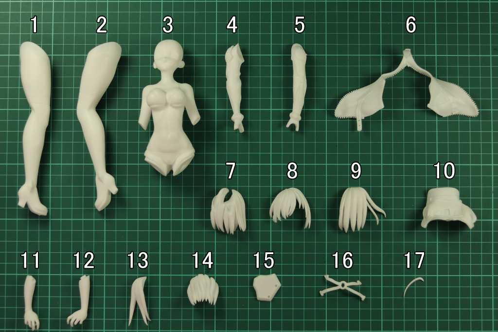 メタリオン作るよ改め「1/6 馬小屋ねる子さん作るよ・2 (グラディウス2Ver.)」今回から開始します。実は今作とは別に予定していたねる子さんのキットがあったのですが、発売時期が全く不明な事に加えてここ最近連続で配信されていたグラ2プレイ動画と以前ボツにしたねる子さんキットのイメージがある日突然脳内で合体。そのイメージが日を追うごとにどんどん膨らんでとりあえずメタリオンを・・・からの製作決定となりました。まだ手元に届いていませんがこの様なパーツ構成となっています。かなり少ないパーツ数ですがその分マスキングが大変でしょうね。前回と同じFGOのマシュです。実物を手にするまで具体的な改造点は不明です。現在作っているライザと背景用のメタリオンが完成するまでには届くと思うので気長に待ちましょう。表面の磨き込みが続いています。飛行機好きな自分としては色々とこだわりたいのでwコックピット後方のカバー部分は廃材で作り直しました。プラ材を強引に曲げて瞬間接着剤でがっちり固めて基礎を作ります。オリジナルの物から倍以上の長さになりました。この部分から二枚の垂直尾翼を生やす予定でしたがバランス的におかしかったので変更します。詳しくは後半の画像で。ポリパテをたっぷり盛り付けて削り出します。完全な円柱状にせず緩やかなふくらみを付けます。機体全体にも意外と複雑なふくらみがあってペーパーがけに苦労しました。形状の決定したパーツ間の隙間をプラペーパーで修正します。もうほとんどフィギュア作りの感覚ですね。エンジンを付けてみました。左が加工前、右が機体になじむよう加工したものです。エンジンはこの様に機体を上下のパーツではさむ作りになっています。機体の厚みを含めて一本の円柱になるようぴったり削るのが大変(;^_^A現在ノズルは以下の2案あります。全体の形が決まってから決定しましょう。ちなみにノズルは3Dプリンタで作成された製品です。だいぶ全体像ができてきました。久しぶりのメカ物作りですが時間を忘れるくらい楽しいです。