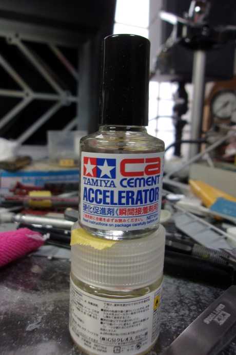 今日の作業はかなり凹みました。約3~4時間かけて作った自作パーツがいつの間にか紛失。2~3時間かけて探しましたが見つかりませんでした。つまり約半日が無駄になってしまったのです(;^_^A今までも何度か経験していますが、今回はイメージ通りのパーツができただけにショックも大きかったです。でもまあそんな程度で作業が止まるわけ無いので作り続けていきましょうw最近手に入れた便利アイテム、瞬間接着剤の硬化促進剤です。よくあるスプレータイプの物とは違ってハケで塗るタイプです。これでハァハァと何度も息を吹きかける手間が省けますwプラ板の箱組みでカタパルトの後部を延長します。中はスカスカなのでしっかり補強して組みます。単純な分、ごまかしが利かない作業ですね。隙間もなくぴったり合いました。成型色がバラバラで塗装のイメージがし辛かった内部の骨組み部分をサフ吹きしました。これは・・・塗装が大変そう(;^_^A延長した部分はこの様な感じになります。まあ実際こんな場所にタンク類があったらとんでもない事になってしまいますけどねwメタリオンの固定方法を見直しました。この角棒一本にエンジンの縁を引っ掛けるようにします。完成時は斜めになるため自重でちょうどいい固定位置になります。地震に備えてもう少し手を加える予定です。最近多いですからね。カタパルトの大まかなイメージが決まりました。中身はスカスカですが大きいので重さが結構あります。当初は角度を変えられるようにと思っていましたが、これは絶対無理ですね。メタリオンを乗せると・・・おぉ~っ!作り込んだ部分がほとんど隠れる~っwwwこう見ると鉄橋の上を走ってるようにも見えちゃいますね(;^_^Aまあ・・・あくまでねる子さんを引き立てるための単なる背景の一部なのでこの程度で良いでしょう。ちなみにすべて完成すると今まで作ってきたフィギュアの中では最大の規模になる予定です。~おまけ~誰にも理解されない趣味コーナー1978年のSFテレビ番組「宇宙空母ギャラクティカ」の登場メカにはプラモのパーツが多数流用されていると先日述べましたが・・・劇中のワンシーン、対空銃座です。この中に現在作っているカタパルトのパーツが色々使われています。緑で囲んだパーツがこれ。黄色の部分はこれ。赤い部分はタミヤの名作キット88mm砲の・・・砲弾入れです。別のシーンですが壁一面に緑で囲んだパーツが張り付けられていますね。このように昔のSF作品のミニチュア特撮シーンはどんなプラモのパーツを流用しているかとニヤニヤしながら見るのが楽しみの一つだと思います。がしかし、私の周りにはそれに同意する人が一人もいません。SF好きな親戚のお兄さんに話しても「夢が壊れる」と言われる始末です。そんなキモイ趣味も最近の特撮のほとんどがCGIに置き換わってしまったため、ここ十年以上まともにSF映画を見ていませんね・・・。