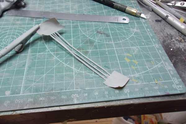 先週作り直しのために真っ二つになったブラウスパーツの加工です。エポパテで埋めた中央部分のシワを再現します。大きなシワをエポパテで作ってから溶きパテでコート。一度ではできないため何度か繰り返しました。ある程度できたら乾燥機に入れて硬化を待ちます。その間に昨日のメタリオン作りの続きを。全体像がほぼできました。ノズル周りが貧弱に見えますが今後パイピングで何とかします(;^_^Aちなみにエンジンはあえてむき出しにします。私、エンジンむき出し表現大好きなんですwさすがに細部は異なりますがシルエットは似てるかと・・・。正面から見るとゲームのOP通りちゃんとW字の逆ガルになってます。この背景用のメタリオンですが、機体が完成しても背景としてはまだ約半分なんです。更にメインのねる子さんフィギュアが加わるのでかなり大掛かりな作品になる予定です。ライザに戻って、その他細かいパーツも仕上げました。フィギュア本体ができてから取り付けるパーツばかりなので簡単そうです。ディスプレイ台に固定するピンを付けましたが一本ではちょっと無理かもしれませんね。この台だけでは雑な印象なので下に花台を敷く予定です。以前作ったライザの帽子のパーツが余っていました。今のライザにかぶせてみようとも思いましたが・・・足元に置いておくだけでも良いかもしれませんね。気が向いたら作ってみます。さて硬化が終わったら粗いペーパーでガシガシ削って形を整えます。今日中に完成させるのは無理なのでとりあえずサフを吹いて取り付けてみます。何とかごまかせたでしょうか(;^_^Aちなみに裾をつかんでいる右手部分もしっかり固定できるよう加工しました。ブラウスは作り直した結果、支え無しでも無理なく固定できるようになりました。塗装開始までもうすぐです。あまり複雑な作りではないので塗装が始まれば完成は早いでしょう。ちゃんとお尻が見えるようになって一安心。遅くも7月の三連休までには塗装に移りたいですね。