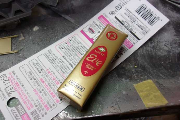 近所のスーパーで懐かしいガムを見つけました。コーヒーガムなどこの手の商品は時々再販売してますね。昔は上部がパカッと開く箱に入っていましたが、この商品は普通のガムと同じ容器です。早速食べてみました・・・あれ!?こんな味だったかな?私が学生時代に食べた記憶とかなり違う印象です。ただ相変わらず香りは強めでして、そばにあった空気清浄機がうなりを上げるほどでしたwさて世間では三連休らしいですが先日お盆休みが終わったばかりのわーしゃにはありません。なので今日一日集中して作業します。メタリオンを乗せる台の正確な位置決めをします。台そのものは決まっているのでそこに取り付けるパーツを作ります。なるべく少ないパーツで作って軽量化させます。ベースはこれで決まりです。先端にある二本の角状のピンは一軸で回転するようになっています。ここを回せば左右でメタリオンとの位置を微調整できます。カタパルトと接続するパーツを縦に接着します。接続だけではなく左右に張り出した板状のパーツを補強する役目も担っています。これらのパーツの位置決めが激ムズでした。見えない箇所にはプラ棒やプラ板を張り巡らせてしっかり接着させます。この台とカタパルトを接続する正確な位置を決めます。金属線はちょっと細いかな~と思いますが、完成時はしっかり固定してしまうので大丈夫でしょう。本当はこの部分も可動させる予定だったんですけどね・・・。まさかメタリオンがあんなに重くなるとは想像もしませんでした。以前可動させるために作ったパーツです。ただの円柱ですが滑らかに動くように削ったので結構手間がかかりましたっけw捨てるのももったいないので固定させるスペーサーとして使用します。メタリオンが引っかかる部分を見直しました。かなりしっかりと取り付けられるようになりました。お尻が重いので置くだけで自然と定位置に来ます。低い位置なら問題ありませんが、これが30~40cmの高さに来ると考えるといまだに不安です。でも何とかしてみます!!最悪の場合は台とメタリオンを接着してしまうという手があります。磁石で固定というのも考えましたが、メタリオンの重さに耐えられそうになかったのでボツりました。とりあえず本日は一つ山を越えられた気がします。まあその山もまだまだたくさんあるんですけどね(;^_^A