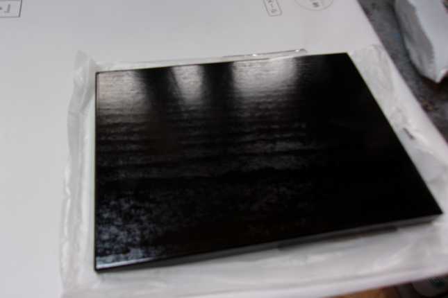 ディスプレイ台の下に敷く花台が来ました。12x13cmと小さいサイズなので安く手に入りました。想像では少し小さいかと思っていましたが、合わせてみるとちょうどいいですね。つるつる滑るのでちょっと怖いですw先週テラピンさんからアドバイスいただいた両面テープも来ました。持ってみると見た目以上に重くてびっくり!早速切り取ってサフを吹いた面にペタペタ。かなり強く張り付けてもサフ面がはがれる感じはありませんでした。「強力」と書かれていますがよくある剥がすのが無理なほど強く付くわけではなさそうです。厚みがあるのでスポンジのベースに両面テープが付いた製品かと思ってみたら全く違いました。まるで粘土のように曲面にもフニャ~っと馴染みます。私が思い描いていた今までの両面テープのイメージとはかなり異なる製品です。コクヨのひっつき虫よりもズレが生じ辛いのでこれはかなり使えそうです。後はやはり塗装面ではどうなるかですね・・・。何はともあれテラピンさん、情報ありがとうございました。さて作業部屋の大掃除をしていよいよ塗装開始です!まずはベースになる色を吹きます。あくまでベースなのでざっと吹きます。この際に色がどこにどのように付くのかも確認します。まあ初日なのでなかなか進みませんね(;^_^Aなどと思って作業を続けていたら9時過ぎに本社から急ぎの仕事の電話が。かなり中途半端な状態で中断となってしまいました・・・orz本日までライザはメタリオン作りと並行して行っていましたが、今後は塗装に集中したいのでこのライザ一本に絞って作業したいと思います。そしてライザが完成する頃にはねる子さん用のフィギュアが届くかと・・・。