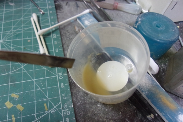 姉のところには今年で約20歳になるネコがいるのですが、先週全く動けなくなるほど体調を崩してしまいました。年齢を考えるとそう長くはないと姉から電話があったので土曜日にちょっと立ち寄ってみました。あれっ?元気そう!姉が言うには一時食事も排泄も自力でできないほど弱っていたのが、ここ最近食欲も出て歩き回れるほど回復したと。ただ排泄が難儀なときは赤ちゃん用の浣腸を使用。獣医に連れて行きたくても猫にとっては逆に大きな負担になるのでこのまま様子を見ていくそうです。鳴き声にも力があってとりあえず一安心。触られるのが大好きな子なので、たっぷり撫でて帰宅しました。さていよいよ完成が見えてきた今週のねる子さん作りです。フィギュアの基礎となる足を接着しました。まずはここの位置が決まらなければ組上がらないのでゴリラグルーでしっかり接着。わずかですが水面に波を加えてみました。イヤリングですが、組んでみたところ肩アーマーと干渉してしまう事が判明。その結果頭全体が首から浮いてしまいます。というわけでビーズで作り直しました。小さくシンプルですがこういうのでいいんですよね。その分光沢感を強調させました。それから悩んだ末にホクロも付けました。ねる子さんの特徴でもあるので。その他組める部分は位置を調整しながらどんどん接着していきます。ゴールドの部分は仮組みの際にべたべた触り過ぎてキズが付いてしまったので再塗装してあります。ボディもしっかり接着しました。肌部分はシャドー部分を中心にパステルで整えます。後ろから。パーツの隙間にメディウムを流し込んで一体感を出します。ある程度進んだら再び仮組み。その際に塗装面を傷付けないよう細心の注意をはらいます。ペンダントはベアリング自体の重さで自然な位置にぶら下がります。一度引き抜いてからゴリラグルーで足首と膝をしっかり接着。ガレキは組み立てる度に固定位置が変化するので単純な作業でもかなり神経を使いますね(;^_^Aおかしな所が無いかじ~~~っと見つめて確認します。例えではなく本当に額から汗が出ます。とりあえず問題は無いでしょう。後はこのまま数日放置して完全に固まるのを待ちます。来週完成予定です。